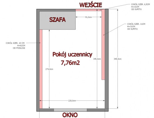 Pokój uczennicy – Warszawa ul. Obrońców Tobruku – 7,8m2 – Projekt zakończony